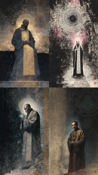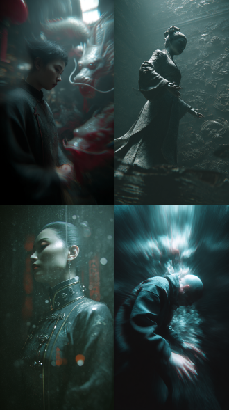 a goddess of annihilation strides through fractured dimensions, her legs becoming weapons of aesthetic warfare. silver streaks slash like blades across monochrome chaos, while acrylic textures erupt into volcanic topographies. the zenith-angle lens crushes space into a singular point of impact—where gothic darkness collides with ink-wash spirituality, and every pixel vibrates with destined violence.unconventional compositional rebellion against tradition.subsurface reflections with faint luminescence千手观音, inevitable fatalism woven into gothic grandeur丰腴 mahakala-inspired极致黑金液态鎏金 (ultimate blackness) glitch-art distortions with high-noise granularity razor-sharp acuity meeting zenith-angle fisheye perspective 16k 三头六臂千手千眼